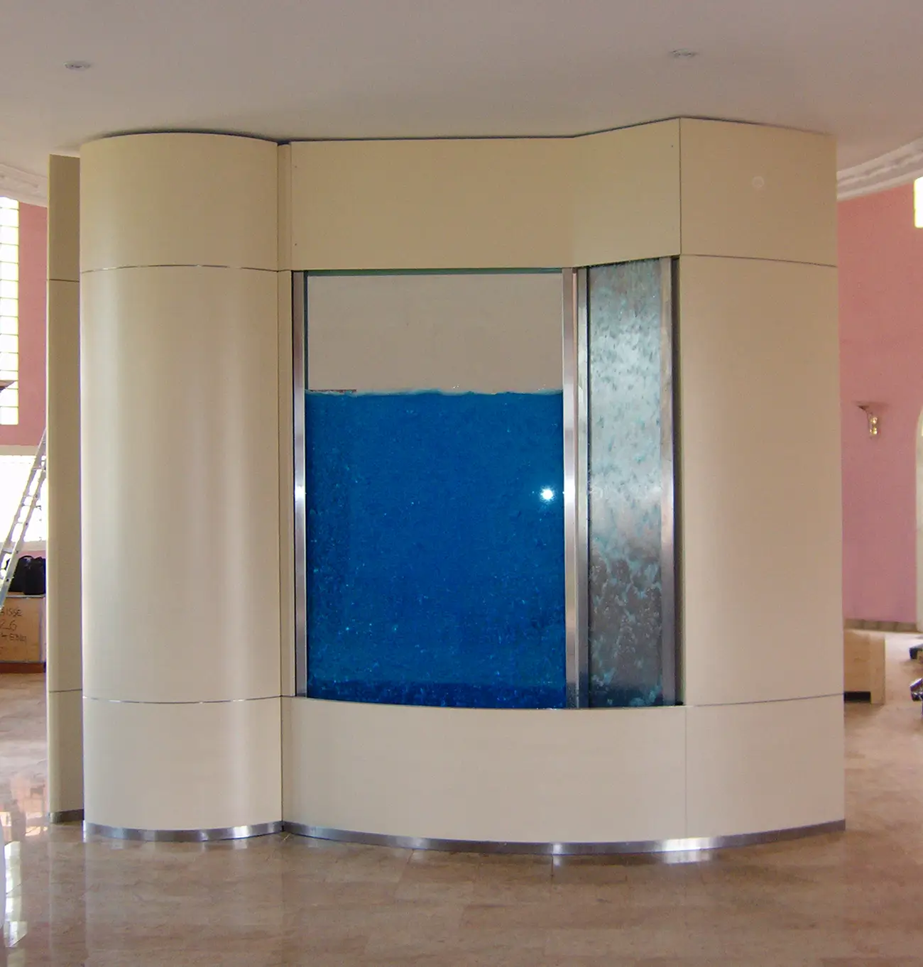 Scenografia interna con giochi d’acqua per un salone villa privata