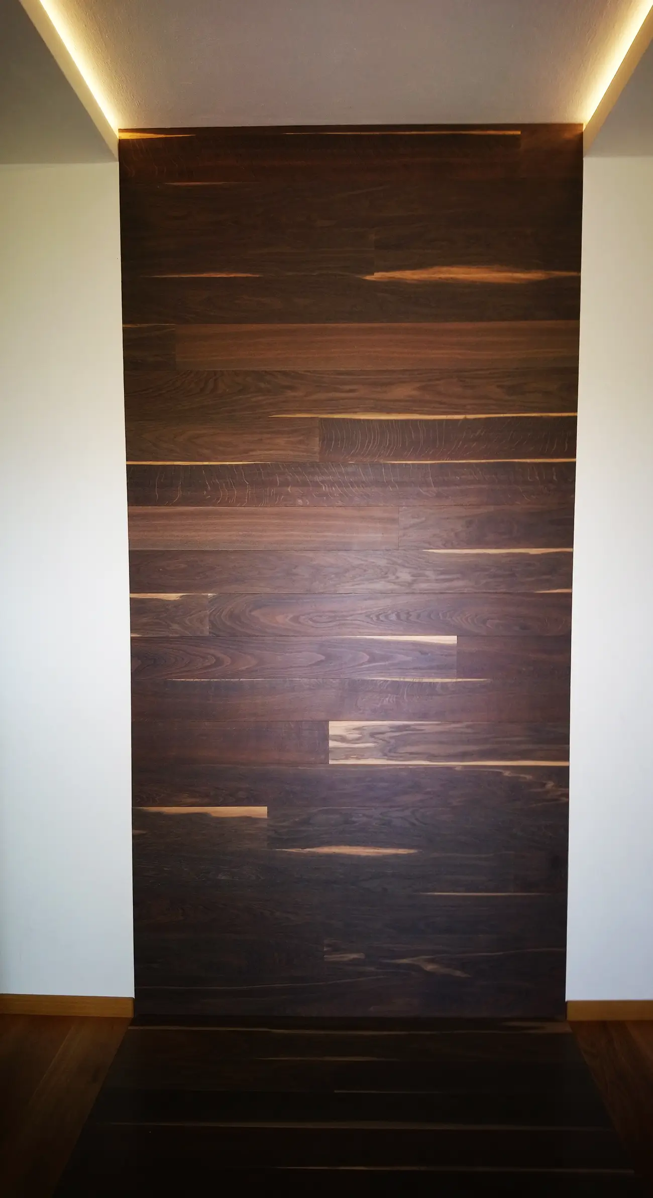 Scala con rivestimento in legno e ringhiera in acciaio corten